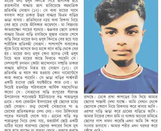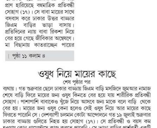 ভোরের আকাশ, ৩১ জুলাই ২০২৪, ওষুধ নিয়ে মায়ের কাছে ফেরা হলো না প্রতিবন্ধী সোহাগের