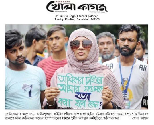 আজকের পত্রিকা, ৩১ জুলাই ২০২৪, সন্তানদের রক্ষায় রুখে দাঁড়ান