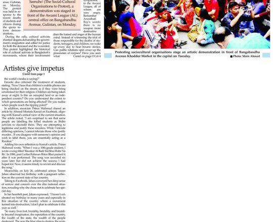 আজকের পত্রিকা, ৩১ জুলাই ২০২৪, শিল্পীদের মিছিলে পুলিশের বাধা