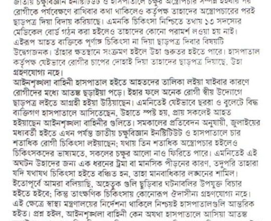 ভোরের আকাশ, ৩১ জুলাই ২০২৪, 'হাড্ডি নেই, চাপ দেবেন না'