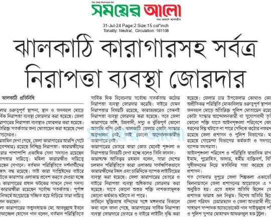 ভোরের পাতা, ৩১ জুলাই ২০২৪, সারাদেশে বিজিবির টহল জোরদার