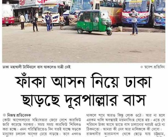 স্বদেশ প্রতিদিন, ৩১ জুলাই ২০২৪, ফাঁকা আসন নিয়ে ঢাকা ছাড়ছে দূরপাল্লার বাস