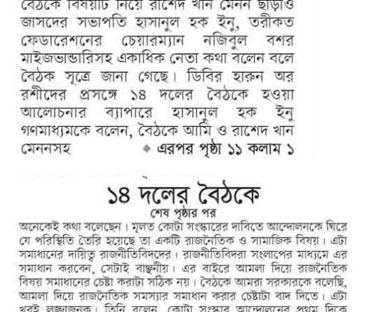 ভোরের আকাশ, ৩১ জুলাই ২০২৪, ১৪ দলের বৈঠকে ডিবির হারুনের কড়া সমালোচনা