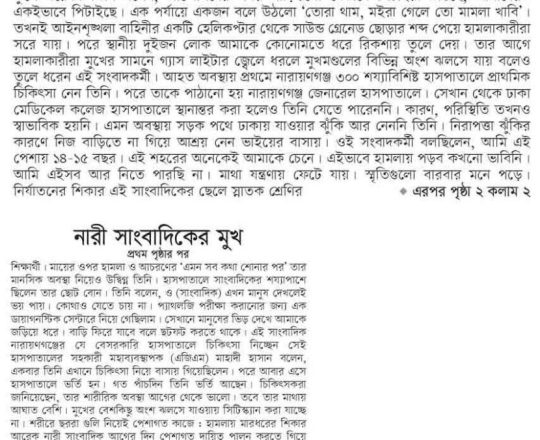ভোরের আকাশ, ৩১ জুলাই ২০২৪, নারী সাংবাদিকের মুখ পোড়ালো দুর্বৃত্তরা