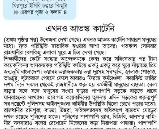 ভোরের পাতা, ৩১ জুলাই ২০২৪, এখনও আতঙ্ক কাটেনি সাধারণ মানুষের মধ্যে