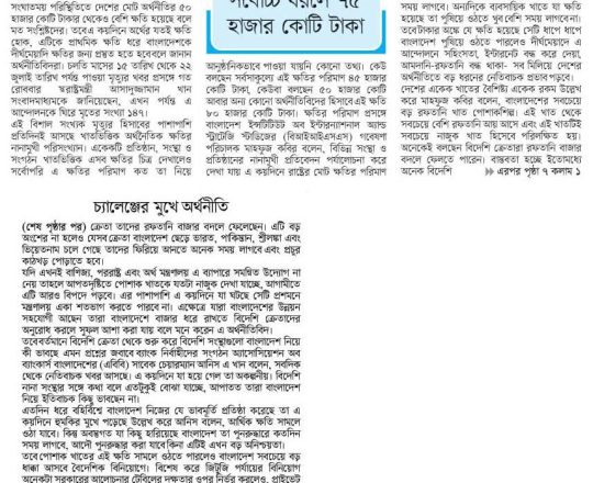 ভোরের পাতা, ৩১ জুলাই ২০২৪, চ্যালেঞ্জের মুখে অর্থনীতি