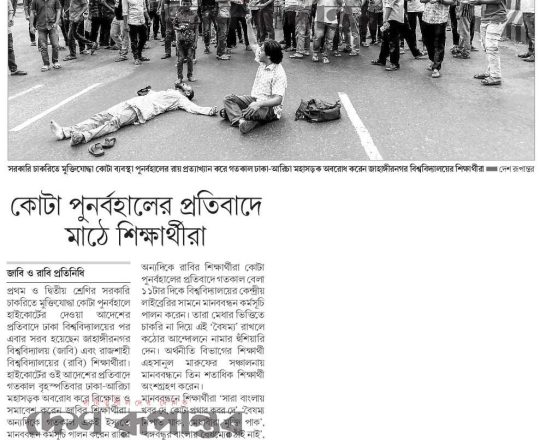 দেশ রূপান্তর, ৭ জুন ২০২৪, কোটা পুনর্বহালের প্রতিবাদে মাঠে শিক্ষার্থীরা