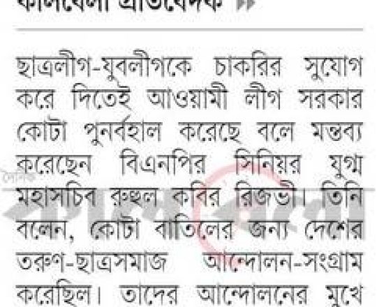 কালবেলা, ৭ জুন ২০২৪, ছাত্রলীগকে চাকরি দিতে কোটা পুনর্বহাল