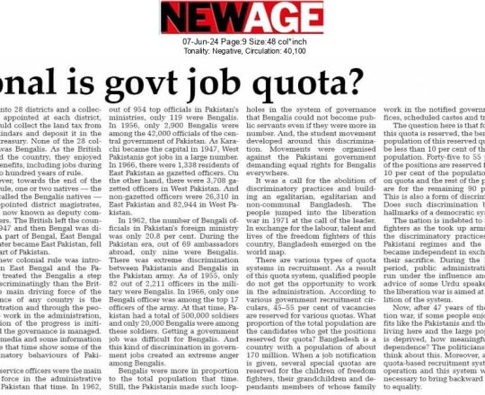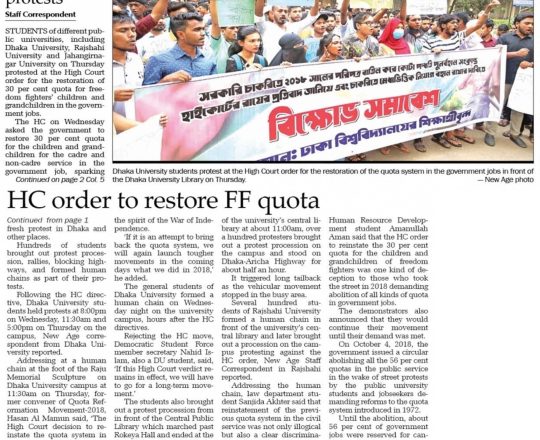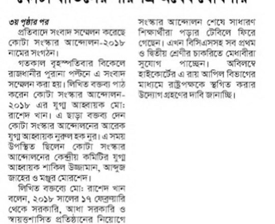নয়া দিগন্ত, ৭ জুন ২০২৪, কোটা সংস্কার আন্দোলন কোটা বাতিলের পরিপত্র অবৈধ ঘোষণার প্রতিবাদে সংবাদ সম্মেলন