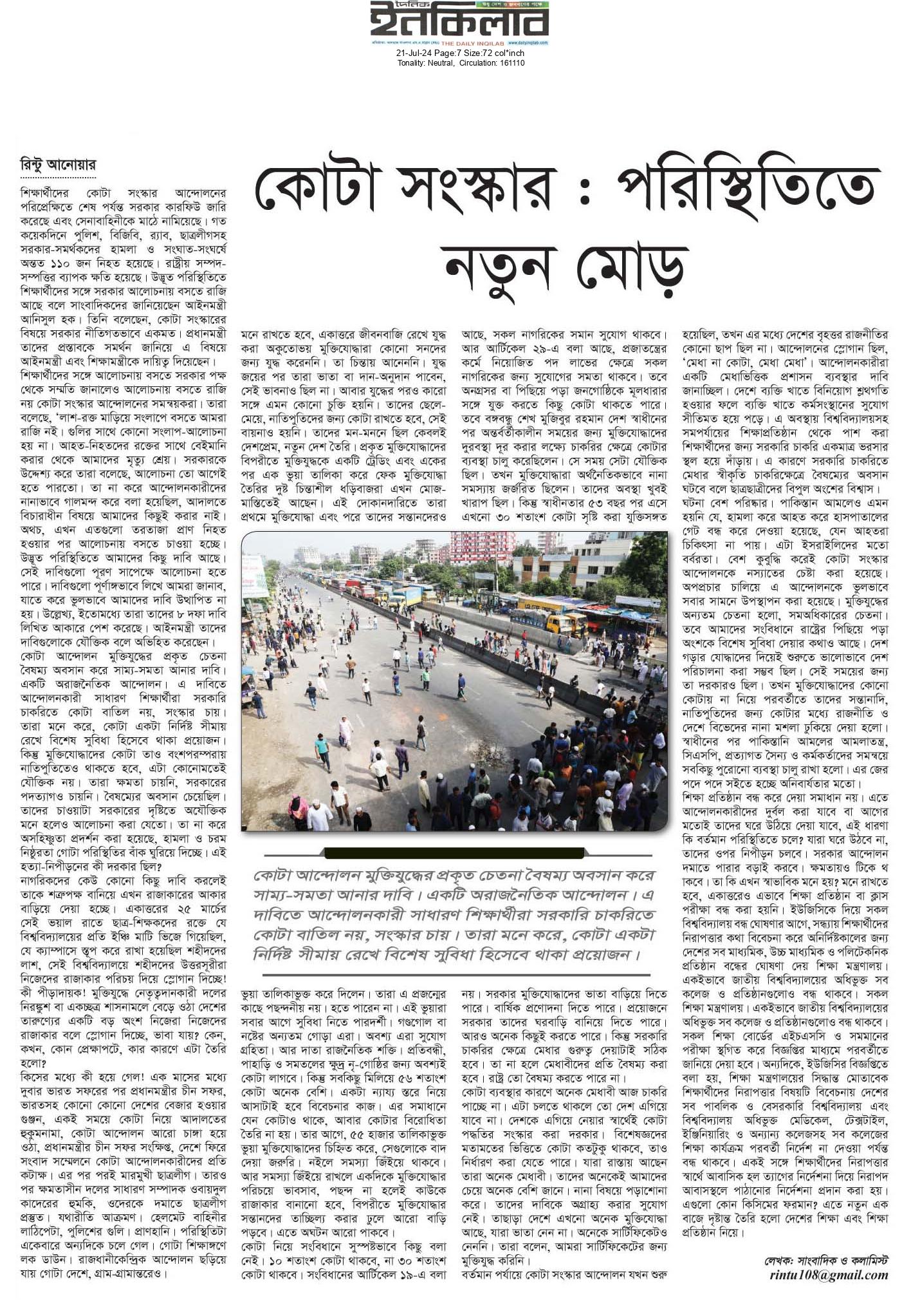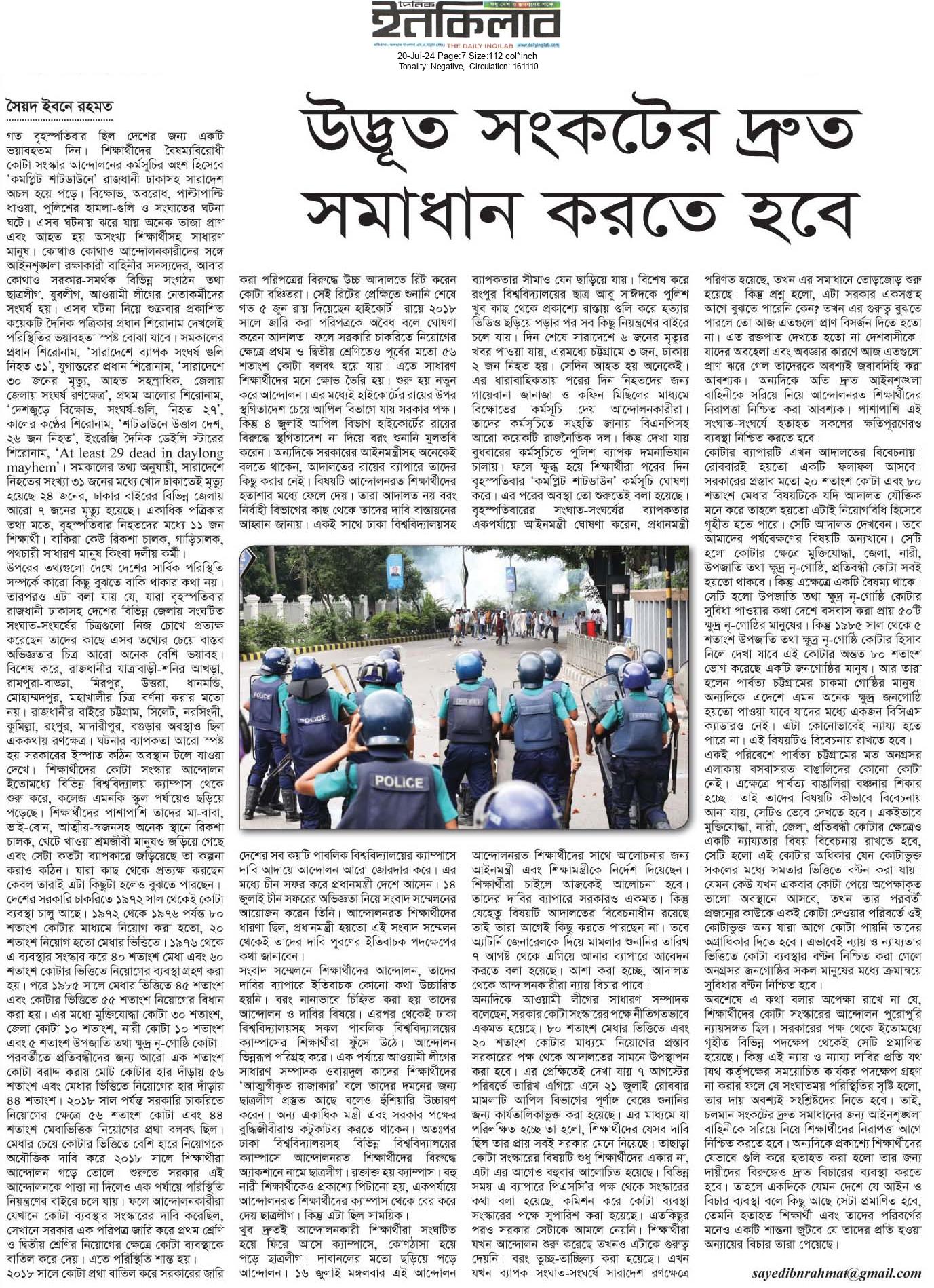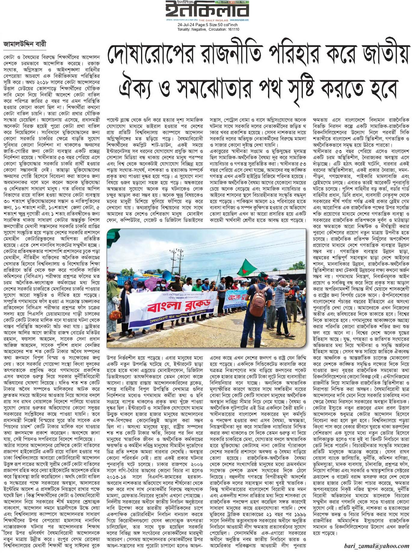 ২০ জুলাইউদ্ভূত সংকটের দ্রুত সমাধান করতে হবে ২১ জুলাইকোটা সংস্কার : পরিস্থিতিতে নতুন মোড় ২৪ জুলাইদোষারোপের রাজনীতি পরিহার করে জাতীয় ঐক্য ও সমঝোতার পথ সৃষ্টি করতে হবে
