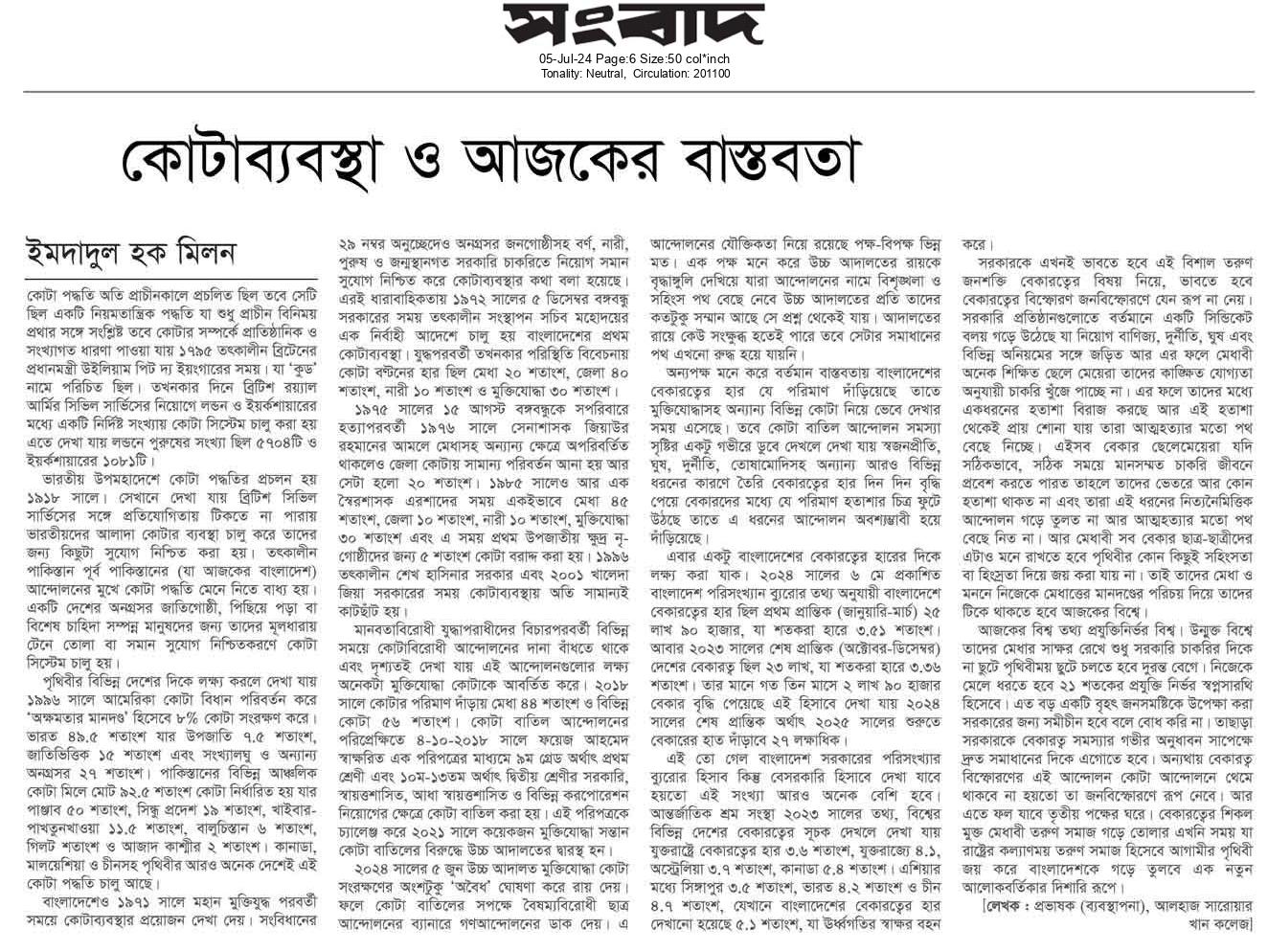 কোটাব্যবস্থা ও আজকের বাস্তবতা