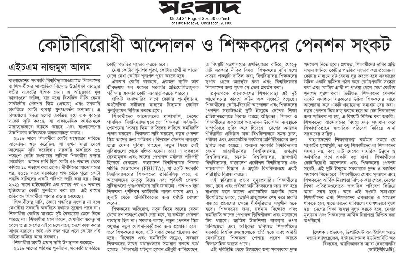 কোটাবিরোধী আন্দোলন ও শিক্ষকদের পেনশন সংকট